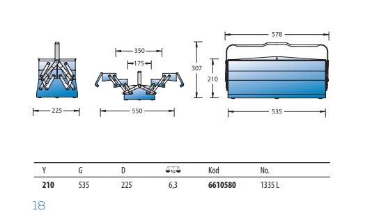 1335 L Takım Çantası 5 Gözlü, Uzun – Boş