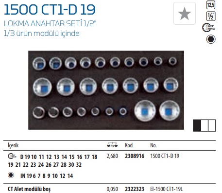 1500 CT1-D 19 Lokma Anahtar Seti 1-2
