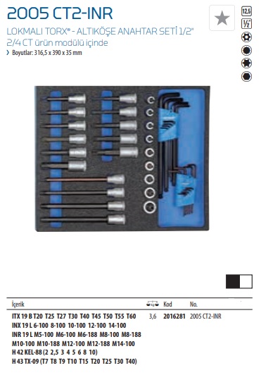 2005 CT2-INR Lokmalı Torx Altköşe Anahtar Seti 1-2