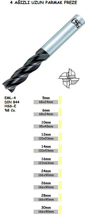4 AĞIZLI UZUN PARMAK FREZE