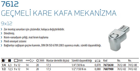 7612 Geçmeli Kare Kafa Mekanizma 9×12