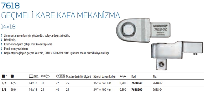 7618 Geçmeli Kare Kafa Mekanizma 14×18