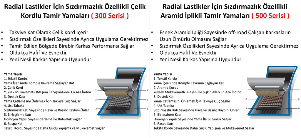 ÇELİK KRODLU VE ARAMİD İPLİ TAMİR YAMALARI TEMA