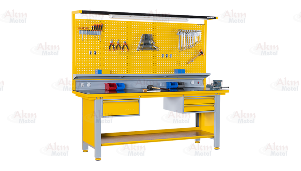 Çalışma tezgahlarıda teleskopik ray sistemine sahip her bir çekmecenin taşıma kapasitesi 40 kg.’dır.