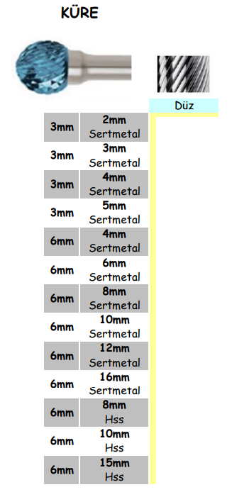 KÜRE FREZELER