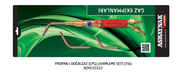 Askaynak by Harris ürün gamı son kullanıcılara propan gazı ile sert lehimleme yapabilme imkanı sunmaktadır. Özellikle oksi-gaz ekipmanları pazarında asetilen gazı ile kullanıma uygun olan lehimleme kolları ve lülelerinin propan gazı ile sert lehimleme için de kullanıldığı görülmektedir. Askaynak by Harris ürün gamında yer alan Model-555 sert lehimleme lüleleri ve kolları propan gazı (doğalgaz) ile gerçekleştirilen sert lehimleme uygulamaları için özel olarak tasarlanmıştır.