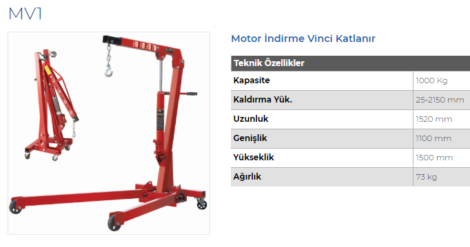 MV1 MOTOR İNDİRME VİNCİ KATLANIR
