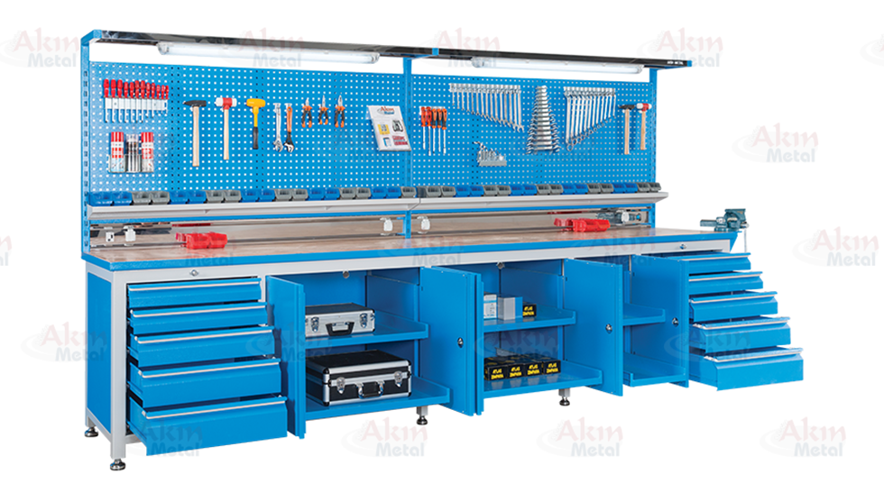 Çalışma tezgahlarında bulunan dolaplar birbirinden bağımsız olarak kilitlenebilir özelliğe sahiptir.